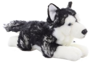 Plyšový Husky o velikosti cca 35 x 12 x 17 cm.