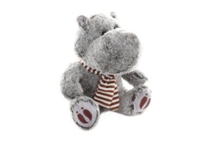 Plyšový hroch o rozměrech 19x25x16 cm.