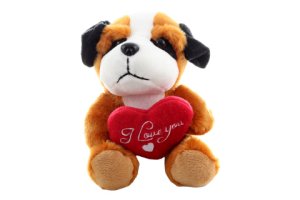 Plyšový pejsek se srdíčkem. Rozměry 10x14x10 cm.