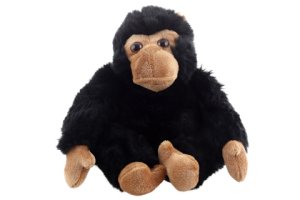 Plyšový šimpanz o rozměrech 20x15x15 cm.