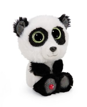 Glubschis Plyšová Panda Peppino vás okouzlí svým hebkým kožíškem v bílé a černé barvě, zelenýma třpytivýma očima a lesklými prvky na jejích malých uších a chodidlech.