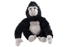 Plyšová gorila o rozměrech 21x14x14 cm.
