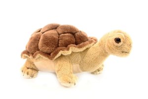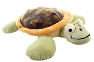 Plyšová želva o velikosti cca 21,5 x 15 x 11 cm.