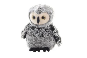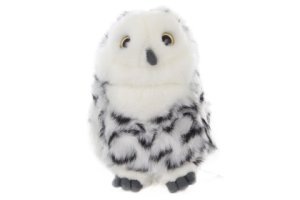 Plyšová sova sněžná o velikosti cca 13,5 x 18 cm.