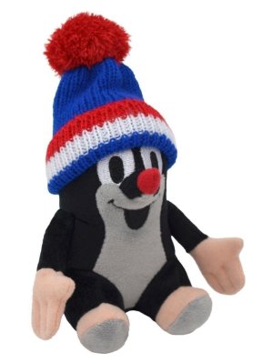 Roztomilý plyšový Krteček se sundavací pletenou čepičkou.