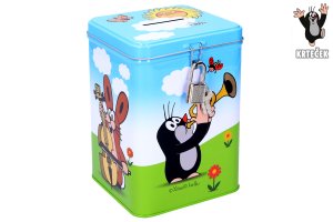 Kovová pokladnička s motivy autíček, medvídků a mnoho dalšího.