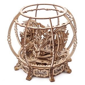 Sada dřevěného 3D puzzle k sestavení hrací skříňky ve tvaru pouťového řetízkového kolotoče ze série kouzelný zábavní park (Magic Amusement Park).