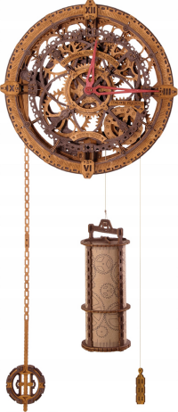 3D puzzle sada pro vytvoření úchvatných funkčních industriálních hodin s kyvadlem, které se budou krásně vyjímat na zdi.