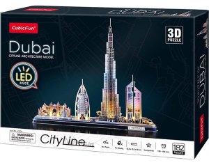 Okouzlující svítící 3D panorama Dubaje. 3D puzzle - stavebnice ze série CityLine od CubicFun vyrobená ze speciálního materiálu - asi 3mm silné pěny potažené laminovaným potištěným papírem.