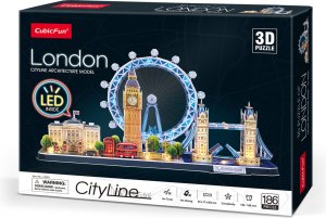 Okouzlující svítící 3D panorama anglického hlavního města. 3D puzzle - stavebnice ze série CityLine od CubicFun vyrobená ze speciálního materiálu - asi 3mm silné pěny potažené laminovaným potištěným …