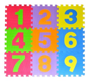 Pěnové puzzle s motivem číslic s vyjímatelnými dílky pro děti od 3 let.