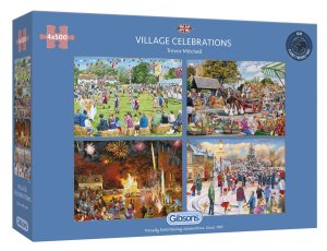 Balení obsahuje 4 puzzle se stejným počtem dílků a rozměrem (Májové oslavy, Táborák, Dožínky, Vánoce).