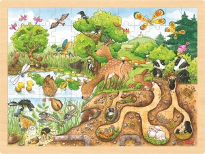 Dětské puzzle ze dřeva s motivem přírody a jejich krás a tajemství.