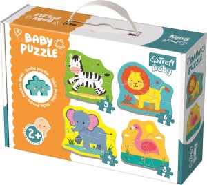 Progresivní obrysové BABY PUZZLE pro nejmenší děti s různým počtem dílků - TREFL - Zvířata na safari 3 + 4 + 5 + 6 dílků