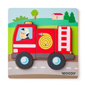 Puzzle WOODY Puzzle Baby Hasič Masivní puzzle pro nejmenší děti Složeno z pěti velkých kousků, které se dají snadno uchopit Na základně hrací desky vytištěna černobílá kresba Ta usnadní orientaci a správné …