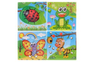 Dřevěné puzzle 9 dílků s motivem zvířátek.
