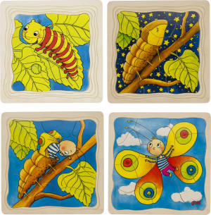 Dětské puzzle ze dřeva s motivem obyvatel lesa.