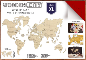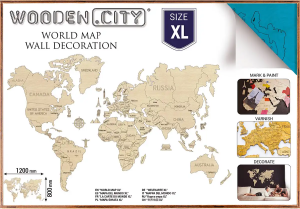 Dřevěné "puzzle" zobrazující mapu celého světa je určeno především jako dekorační prvek nebo stylový dárek nejen pro cestovatele.