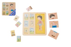 Edukativní dřevěné puzzle s motivem lidského těla.