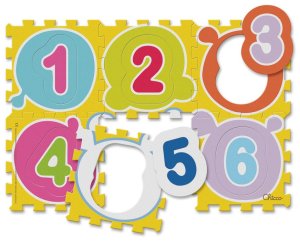 Měkká a přesto stabilní pěnová podložka se šesti vyjímatelnými číslicemi od známé italské značky CHICCO je vhodný pro první skládání i pro rozlišování barev.