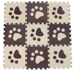 Pěnové podlahové puzzle v béžovo-hnědém provedení s vroubkovaným povrchem a dostatečně velkými vyjímatelnými částmi.