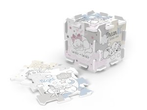 Pěnové puzzle se světle šedými a bílými dílky pro děti od 3 let.