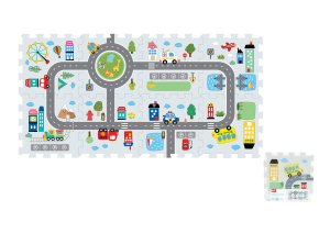 Pěnová podložka rozvíjí senzomotorické schopnosti, myšlení, kreativitu a soustředěnost. 10 dílů s dopravními prostředky je vyrobeno z bezpečného materiálu, který je měkký, omyvatelný, lehký, odolný a zároveň skvěle izoluje a tlumí hluk.