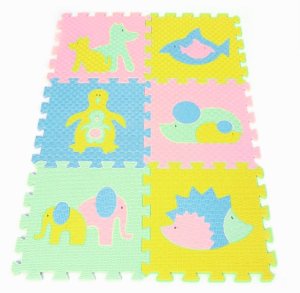 Pěnové podlahové puzzle s potiskem zvířátek.