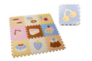 Pěnové puzzle s motivy jídla. Obsahuje 9 dílků.