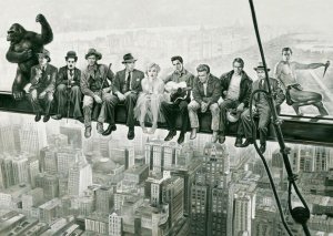 Parodie fotografie Čas oběda, rok 1932 od Renata Casara se známými a slavnými osobnostmi.