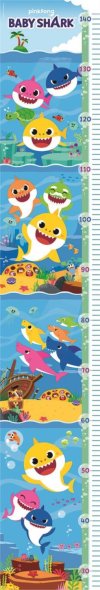 Velký dětský růstový metr s motivem populární žraločí rodinky s měřidlem od 27 do 143 cm.