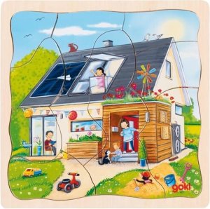 Obvodové zdi, střecha, okna. Tato vícevrstvá skládačka zobrazuje dům v průběhu jeho výstavby. rozvoj jemné motoriky, podkladová deska s pevným okrajem slouží jako podložka pro skládání, každá vrstva …