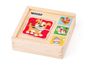 Dřevěné dětské puzzle se čtyřmi dílky pro úplně první skládání. obrázek se může skládat do rámečku nebo samostatně atraktivní motiv domácích zvířátek obsahuje 16 ks (4 dílky, 4 vzory) český design od …