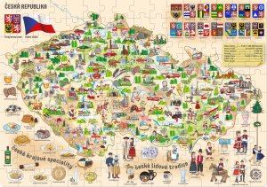 Zeměpisné puzzle pro děti s mapou České republiky a ilustracemi od výtvarníka Josefa Záruby.