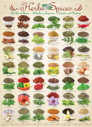 Puzzle EUROGRAPHICS s obrázky mnoha druhů bylinek a koření.