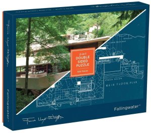 Puzzle mají z jedné strany motiv jednoho z nejslavnějších domů - dům s vodopádem, tedy Fallingwater, a z druhé motiv stavebního plánu této budovy.