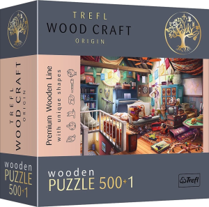 Dřevěné oboustranné puzzle TREFL z prémiové řady Wood Craft Origin se speciálně tvarovanými dílky.