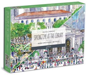 Dvojnásobná porce! Oboustranné puzzle Veřejné knihovny na Fifth Avenue zobrazuje přední a zadní trakt budovy.