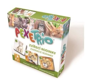 Pexetrio ZVÍŘECÍ RODINKY jsou didaktické a zábavné hry, při kterých se naučíte rozpoznávat různé zabarvení a podobu samce, samice a mláděte u jednotlivých zvířecích druhů.