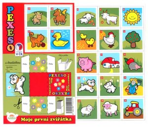 Papírové pexeso obsahuje 32 dvojic s veselými obrázky.