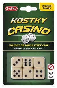 Kasíno bude vždy s tebou! Šest praktických kostek barvy slonoviny, návod v balení.