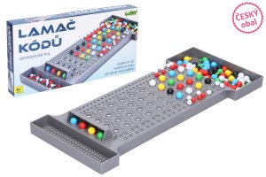 Lamač kódů společenská hra. Obsah balení- návod, hrací deska, 108 kódovacích kolíků v 6 barvách, 30 červených indikačních kolíku, 30 bílých indikačních kolíků.