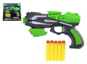Pistole na pěnové náboje zelená 20 x 14 cm, plast + 5 ks nábojů na kartě