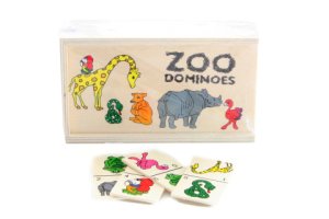 Dřevěné domino s obrázky zvířátek ze zoo.