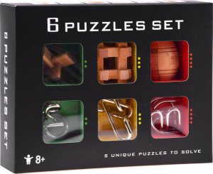Sada šesti hlavolamů v různým obtížnostech. Úkolem je nejprve najít způsob, jak tyto dvě části bez použití síly rozebrat a následně je zase složit do výchozí pozice. 3 hlavolamy z kovu 3 hlavolamy ze …