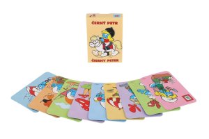 Dětské karty pro hru zvanou Černý Petr s obrázky Šmoulové.
