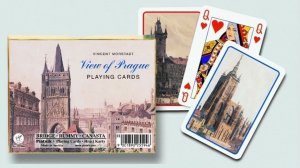…známý francouzský vzor na jiném formátu karet typu Rummy vychází z tradice použití v Čechách spolu s vlnkovým reversem v modrém a červeném provedení.