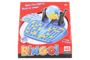 Hra Bingo obsahuje hrací plastovou desku, losovací míčky, losovačí kouli a lístky na bingo.