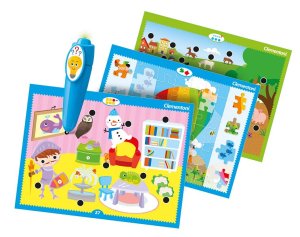 Vzdělávací sada Clementoni – Interaktivní pero obsahuje 32 herních karet s 64 aktivitami.