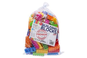 Stavebnice barevná. Balení obsahuje 150 dílků různých rozměrů.